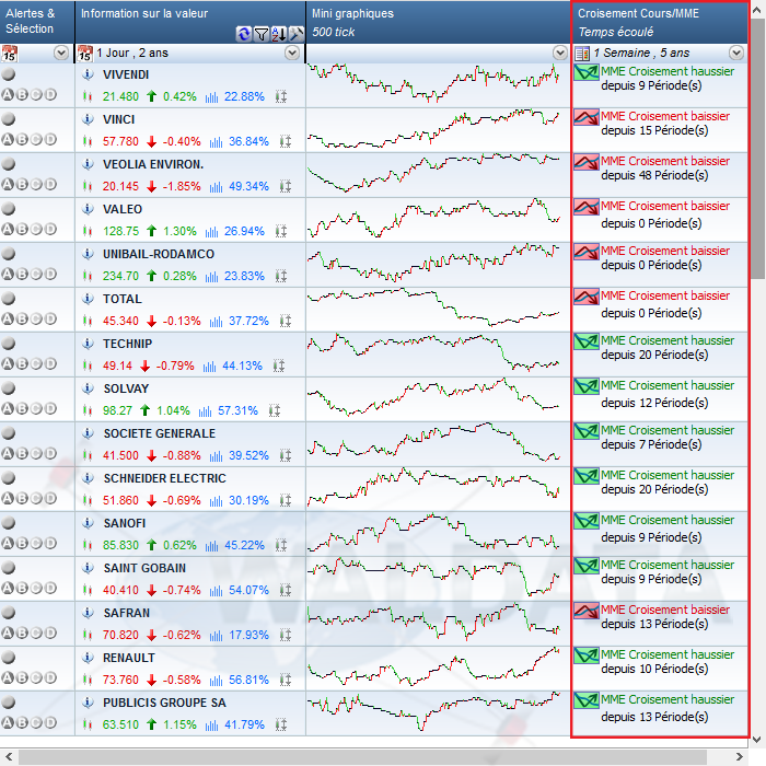Calcul du temps écoulé depuis le dernier croisement entre le Cours et sa MME.