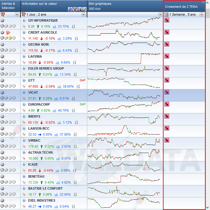 Colonne permettant la détection du croisement entre deux moyennes TEMA.